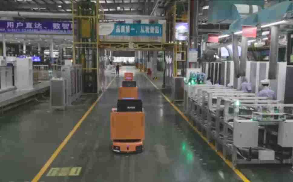 为车载冰箱物流配送打造的智能解决方案,,,,包含产中物流通过潜伏举升AMR搬运至线边,,,,产后成品物流智能仓储,,,流程包含产中物流智能齐套入库,,线边安灯叫料AMR智能配送至线边,,,成品入库、、、出库,,通过无人堆高车机器人,,,智能仓储管理替代人工作业管理,,实现更高存储、、更高效率、、、、更具柔性化的解决方案。。。