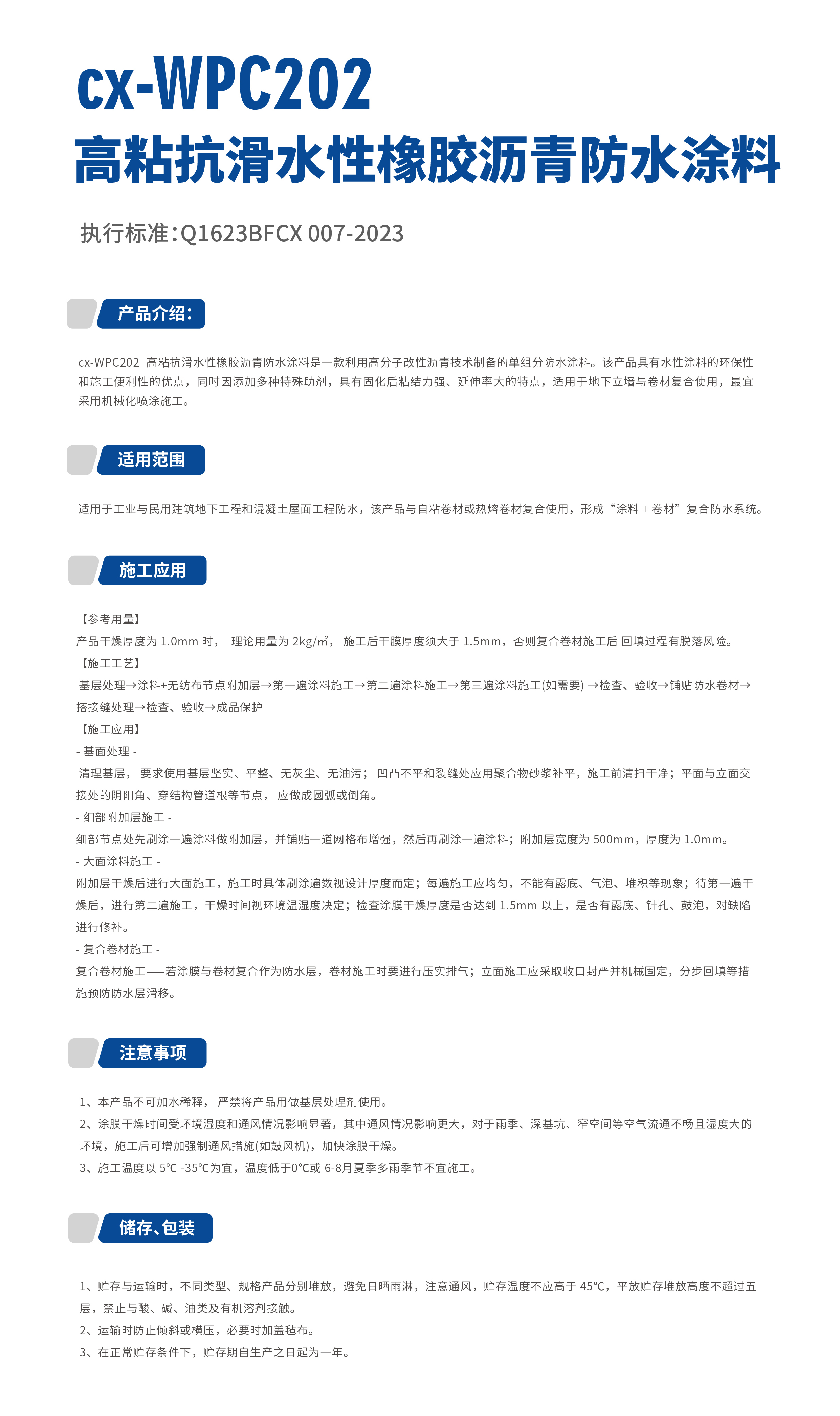 cx-WPC 202 高粘抗滑水性橡胶沥青防水涂料