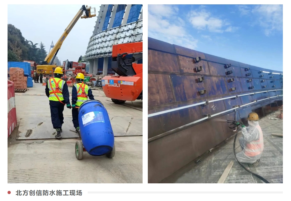 在项目工期严峻的形势下,,,凯时尊龙施工团队利用cx-SSE喷涂速凝橡胶沥青防水涂料施工效率高、、对金属材质的附着性卓越、、对异形部位(支撑件)的服帖性及抗流坠性强等优势,,为总包单位下一工序——外装饰石材及外金属板安装争取了宝贵时间,,助力三星堆新馆如期开放。。