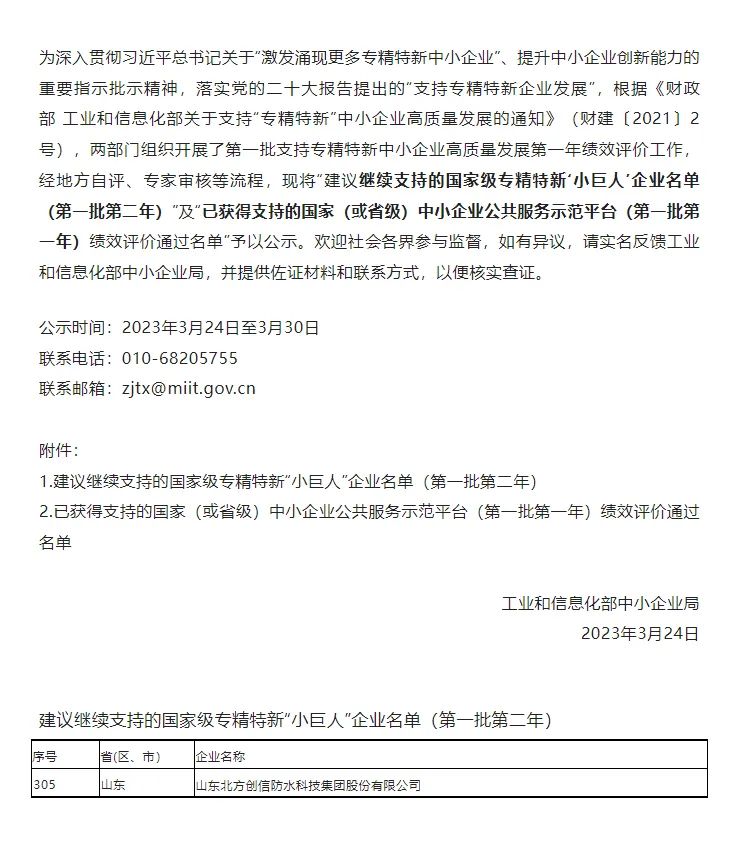 3月24日,,,工信部公示了第一批第二年建议继续支持的国家级专精特新“小巨人”名单,,从第一年的782家企业中择优575家。。。凯时尊龙集团通过审核,,,再度上榜!!